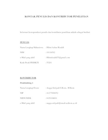 18. UNIKOM_HILMI AZHAR RIZALDI_LEMBAR KONTAK PENULIS DAN KONTRIBUTOR.pdf - Published Version