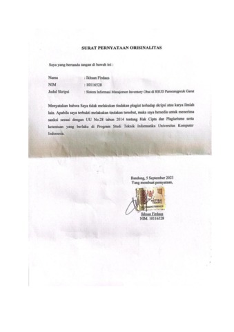 UNIKOM_IKHSAN FIRDAUS_SURAT PERNYATAAN ORISINALITAS.pdf - Published Version