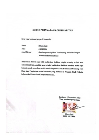 20.UNIKOM_ILHAM ZAKI_SURAT PERNYATAAN ORISINALITAS.pdf - Published Version