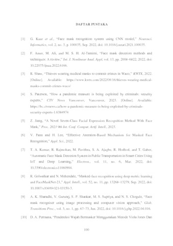 Sejak akhir 2019, pandemi COVID-19 berdampak besar di seluruh dunia dengan penggunaan masker yang meningkat. Meskipun melindungi dari virus, masker juga menciptakan anonimitas berlebihan dan menghambat pengawasan keamanan. Solusinya adalah mengembangkan teknologi pengenalan wajah yang memperhitungkan masker untuk menjaga akurasi identifikasi individu. Selama tiga tahun pandemi, penelitian telah menghasilkan sistem deteksi dan pengenalan wajah bermasker menggunakan deep learning seperti YOLO-v5. Metode ini berhasil mengatasi kendala deteksi objek kecil dan kompleks melalui Mosaic augmentation dan Auto-Anchor. Uji coba dilakukan dengan video menggunakan ponsel sebagai webcam dengan variasi pencahayaan. Hasil menunjukkan bahwa pencahayaan bergantung pada perangkat penangkap gambar, dan penggunaan background images seimbang (0-10%) diperlukan untuk optimalisasi pelatihan. Anotasi yang fokus pada wajah tanpa masker menghasilkan model dengan akurasi 93%, lebih baik daripada yang melibatkan masker. Penelitian melibatkan 2800 data latih identitas wajah dan 200 set validasi, dengan akurasi 93,15%. YOLOv5 cocok untuk pengenalan wajah real-time di tempat umum, dengan perhatian pada kualitas kamera, pencahayaan, jarak objek, jumlah epochs yang tinggi, dan komposisi penggunaan background images seimbang sesuai panduan resmi.