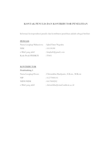 18.UNIKOM_IQBAL FATUR NUGRAHA_LEMBAR KONTAK PENULIS _ KONTRIBUTOR.pdf - Published Version