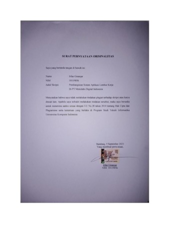 20.UNIKOM_IRFAN GINANJAR_SURAT PERNYATAAN ORSINALITAS.pdf - Published Version
