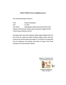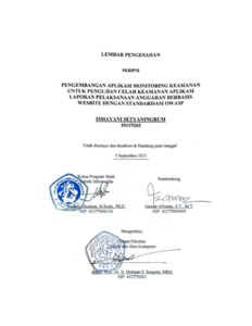 Setyaningrum, Ismayani (2023) Pengembangan Aplikasi Monitoring Keamanan Untuk Pengujian Celah Keamanan Aplikasi Laporan Pelaksanaan Anggaran Berbasis Website Dengan Standarisasi Owasp. Other thesis, Universitas Komputer Indonesia.