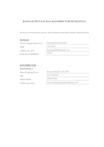 UNIKOM_ISMAYANI SETYANINGRUM_LEMBAR KONTAK PENULIS _ KONTRIBUTOR.pdf - Published Version