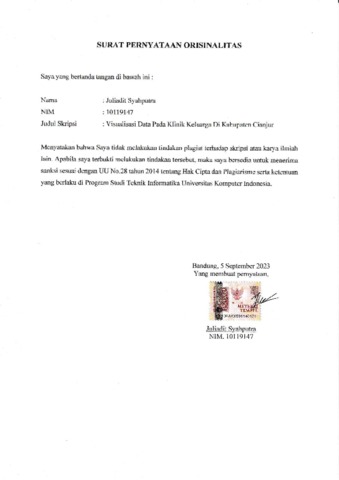 Syahputra, Juliadit (2023) Visualisasi Data Pada Klinik Keluarga Di Kabupaten Cianjur. Other thesis, Universitas Komputer Indonesia.