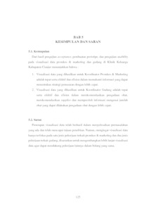 Tujuan penelitian ini adalah menghasilkan visualisasi yang tepat serta efektif dan efisien untuk membantu Koordinator Promkes dan Marketing serta Koordinator Gudang dalam memperoleh informasi yang dibutuhkan dengan lebih cepat. Berdasarkan hasil wawancara yang telah dilakukan kepada Koordinator Promkes dan Marketing serta Koordinator Gudang mengatakan bahwa bentuk penyajian informasi saat ini berupa grafik. Akan tetapi bentuk penyajian tersebut belum membantu Koordinator Promkes dan Marketing serta Koordinator Gudang dalam menjalankan tugas - tugasnya dan salah dalam menafsirkan informasi. Dengan begitu banyaknya data yang perlu diolah hal ini mengakibatkan pihak Koordinator Promkes dan Marketing serta Koordinator Gudang membutuhkan waktu yang lebih lama untuk mendapatkan informasi sehingga menghambat tugas–tugas dari Koordinator Promkes dan Marketing serta Koordinator Gudang. Dalam penelitian ini, metode yang digunakan adalah visualisasi data, dengan tahapan yang dilakukan adalah analisis kebutuhan informasi berdasarkan pekerjaan, analisis sumber data, pemetaan data, analisis metode ekstraksi pengetahuan, perancangan visualisasi, pengujian perancangan visualisasi, perbaikan perancangan visualisasi, implementasi perangkat lunak, dan pengujian perangkat lunak. Proses ekstraksi pengetahuan dilakukan dengan memanfaatkan teknik statistik deskriptif dan data mining. Implementasi dari perancangan visualisasi dilakukan melalui pembuatan prototipe yang kemudian akan diuji melalui metode pengujian kebergunaan (usability testing). Dari hasil pengujian yang dilakukan, dapat disimpulkan bahwa prototipe visualisasi data membantu mempercepat pemahaman informasi yang dibutuhkan oleh Koordinator Promkes dan Marketing serta Koordinator Gudang.