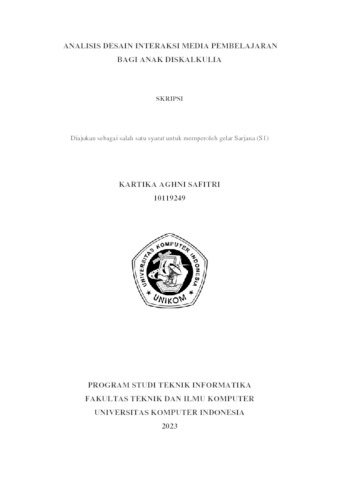 Safitri, Kartika Aghni (2023) Analisis Desain Interaksi Media Pembelajaran Bagi Anak Diskalkulia. Other thesis, Universitas Komputer Indonesia.