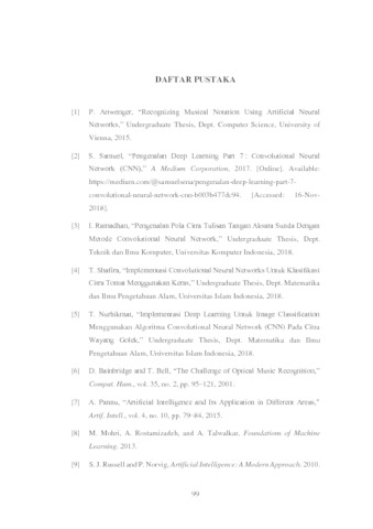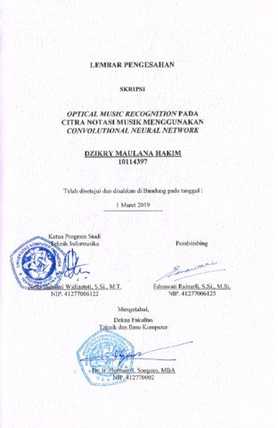 Hakim, Dzikry Maulana (2019) Optical Music Recognition Pada Citra Notasi Musik Menggunakan Convolutional Neural Network. Other thesis, Universitas Komputer Indonesia.