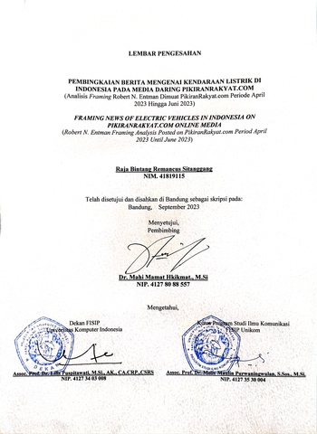 Sitanggang, Raja Bintang Remancus (2023) Pembingkaian Berita Mengenai Kendaraan Listrik Di Indonesia Pada Media Daring Pikiranrakyat.Com. Other thesis, Universitas Komputer Indonesia.